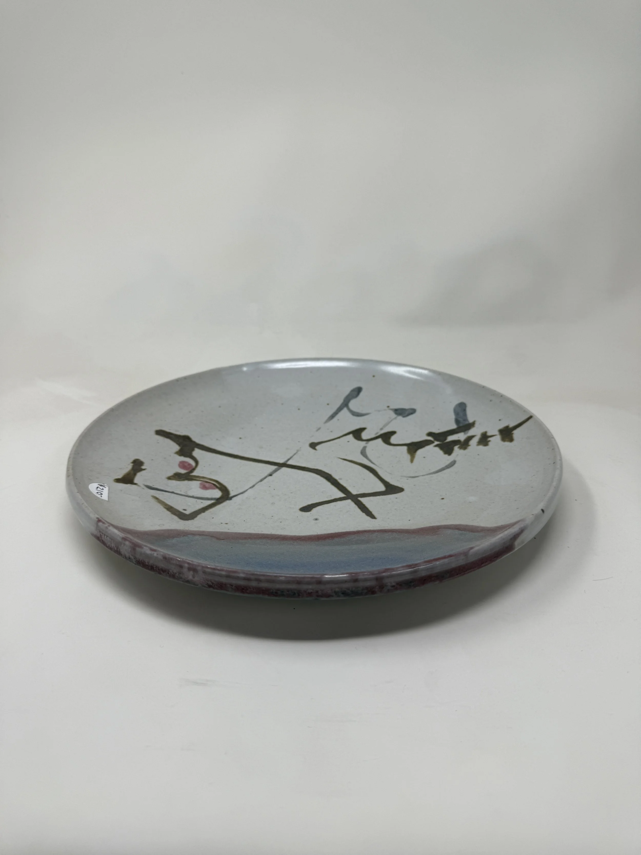 Categories: All Tumblers Sculpture Salt Cellars Cream & Sugar Set Yunomi Lamps Vessel Jugs & Bottles Vase/Spoon Holders Miniatures Candle Sticks Bowls Covered Jars Sinks Pitchers Mugs Wine Goblets Tea Pots Vases All / Platters / Plates Plate 10.5" W Brushwork $210.00